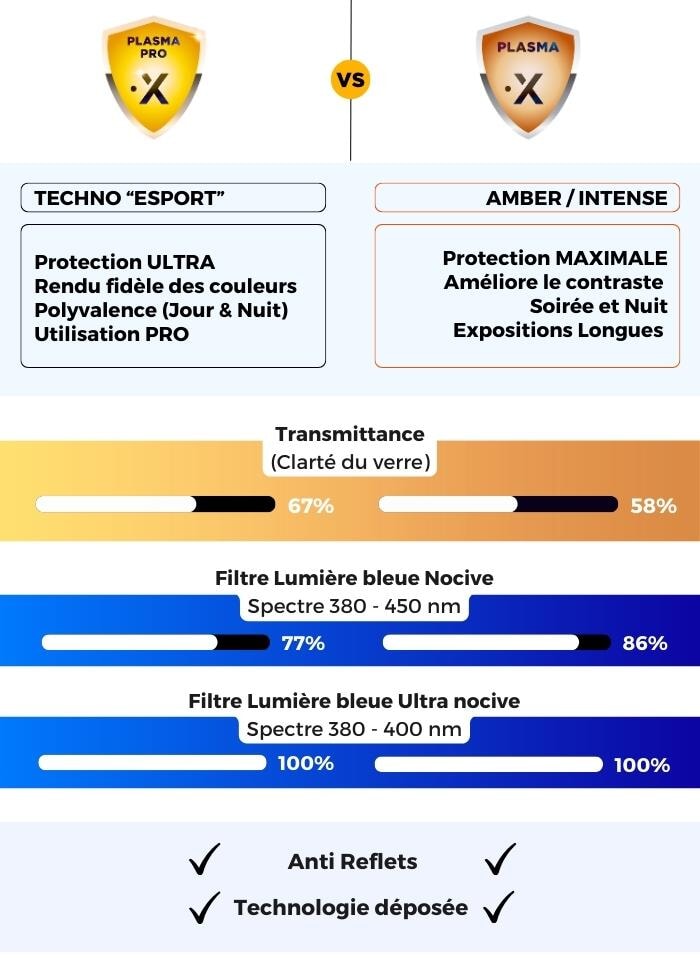 Niente più cali di rendimento con questi occhiali anti luce blu progettati appositamente per i giocatori. Filtro di protezione al 100% dalla luce blu a 400 nm e oltre il 60% o l'86% tra 380 e 450 nm (a seconda del modello). Occhiali ideali per una protezione intensa durante il gioco, sia per gli sportivi che per i giocatori occasionali.