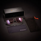 Occhiali anti luce blu resistenti e durevoli in policarbonato (materiale utilizzato nella protezione balistica) e/o ricino + cerniere metalliche rinforzate. Abbiamo così tanta fiducia nei nostri occhiali che sono garantiti a vita. Proprio così!