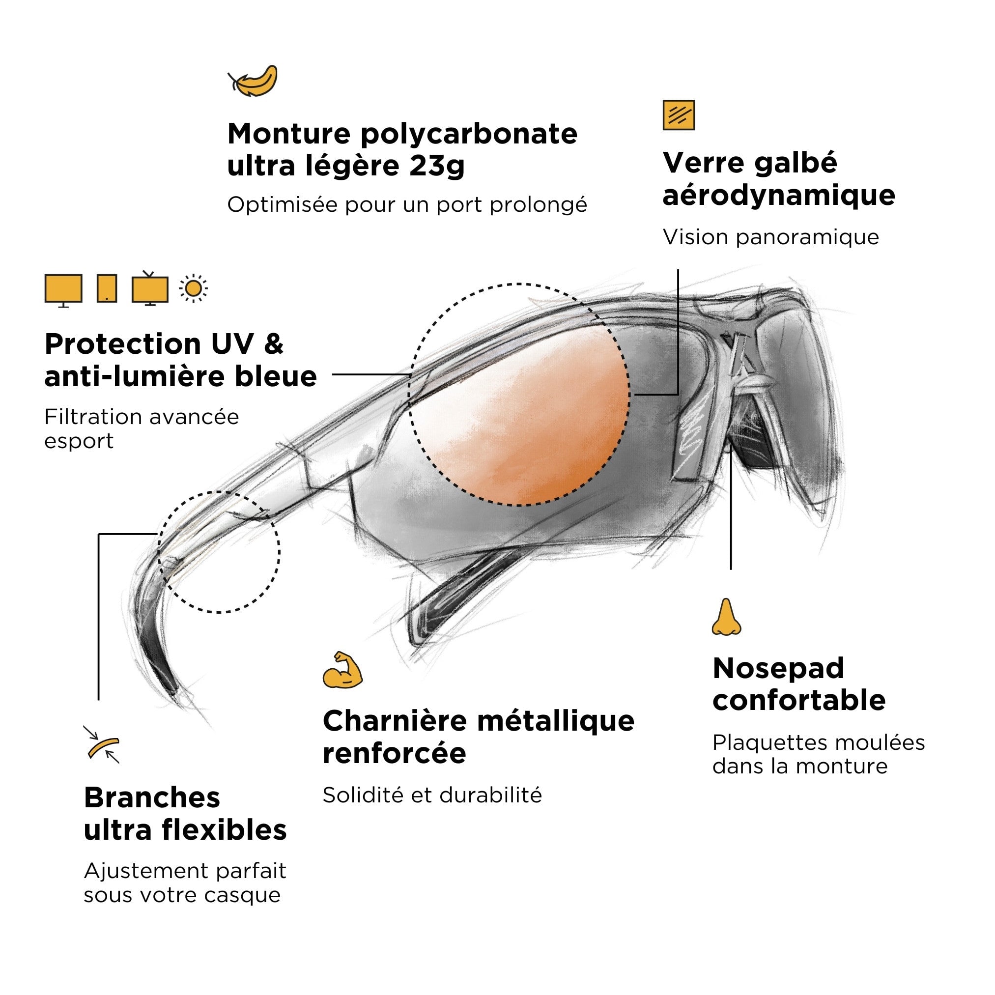 Monture et verres galbés pour élargir le champ de vision, nosepad ultra précis et confortable, poids plume (23g), branches coinjectées ergonomiques et flexibles : La lunette gaming ProXima est-elle la meilleure qui existe ? Nous, on en est convaincu, et si tu faisais le test ?