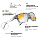 Des lunettes toujours aussi résistantes et durables en polycarbonate (matériau utilisé en protection balistique) + charnières métalliques renforcées + branche alliage métal + embout silicone. Équipées de notre fameuse garantie à vie Horus X.