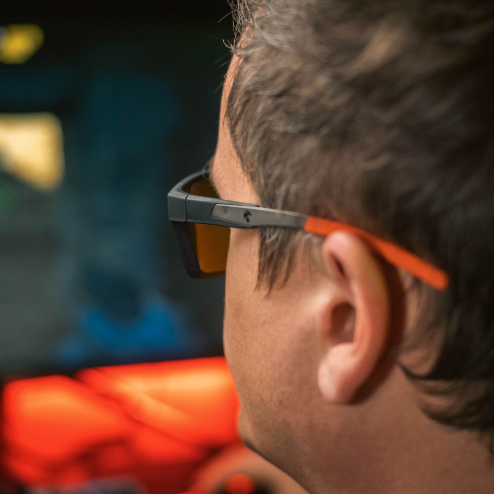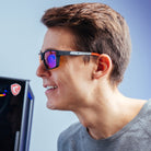 Lunettes pour gamer équipées des branches ajustables en alliage signature Horus X, l'évolution de notre lunette Gaming One offre un confort supérieur optimisé pour le port du casque.