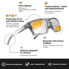 Des lunettes toujours aussi résistantes et durables en polycarbonate (matériau utilisé en protection balistique) + charnières métalliques renforcées + branche alliage métal + embout silicone. Équipées de notre fameuse garantie à vie Horus X.