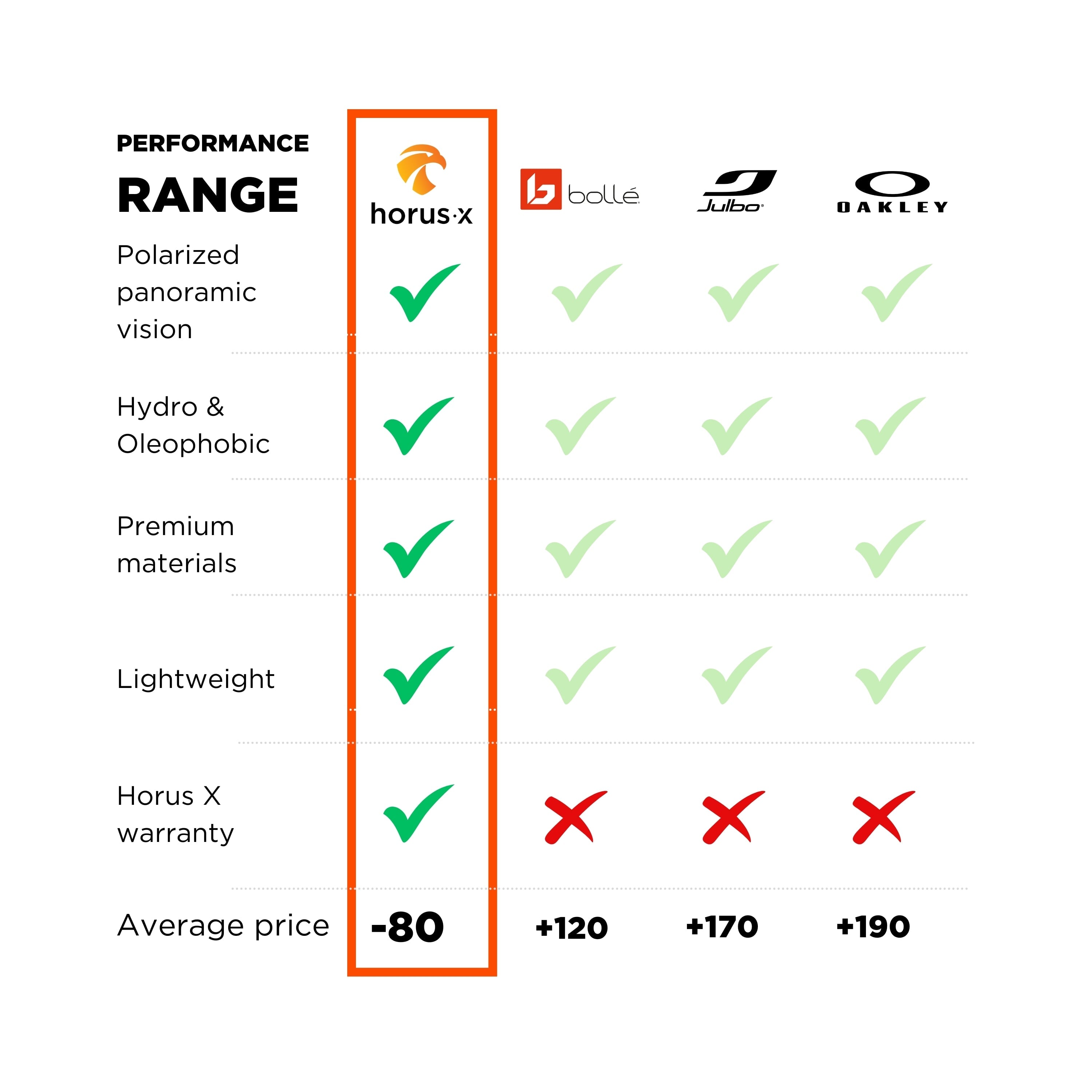 Il meglio delle tecnologie di alto livello (corsa, ciclismo, trail, sci), migliorato dalla tecnologia Horus X. Perfetti per massimizzare le tue prestazioni all'aperto, offrono una protezione solare ottimale garantendo al contempo comfort e una chiarezza visiva eccezionale grazie alle lenti polarizzate e al trattamento anti appannamento, idrofobo e oleorepellente.