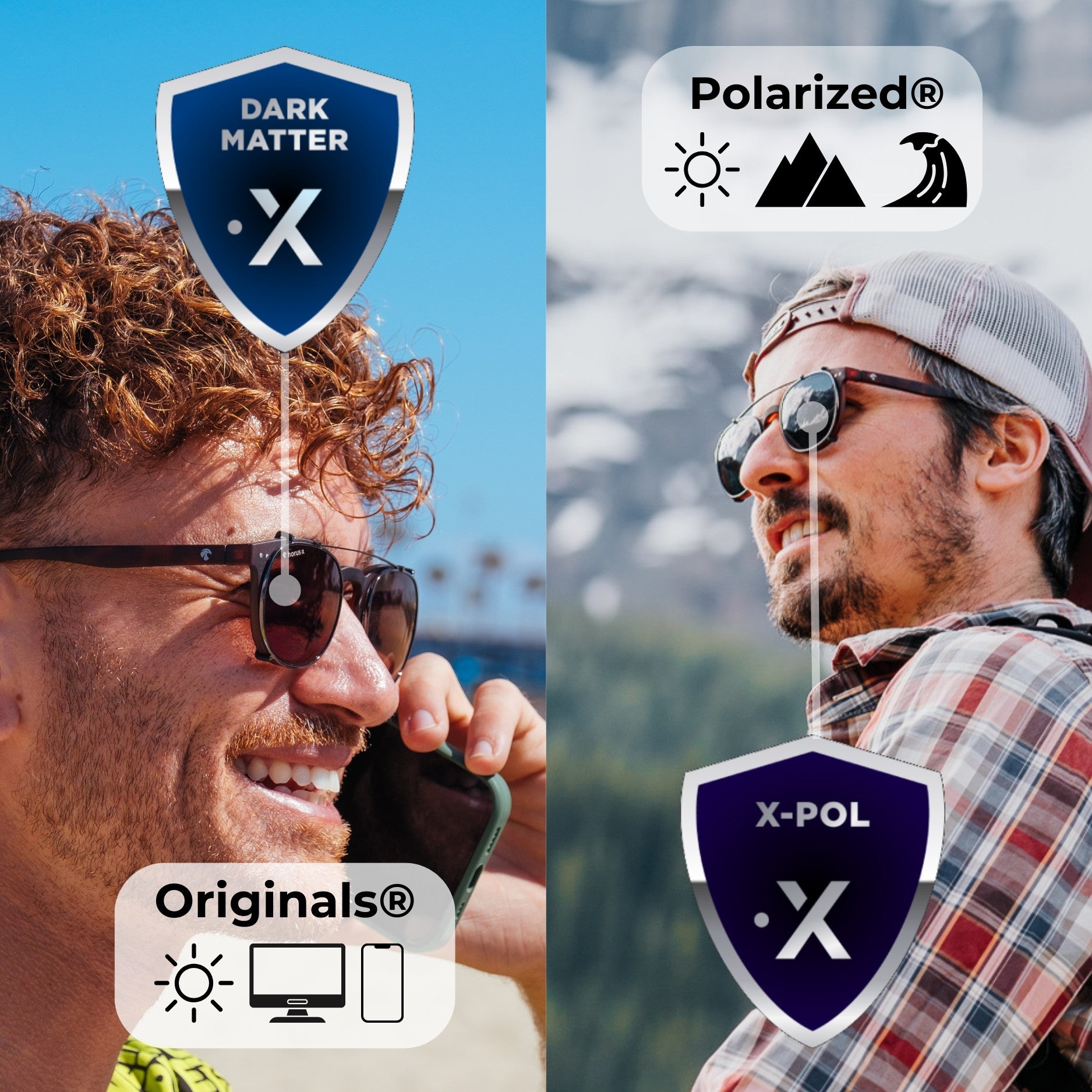 - Polarisés X-pol® pour les environnements les plus éblouissants.
